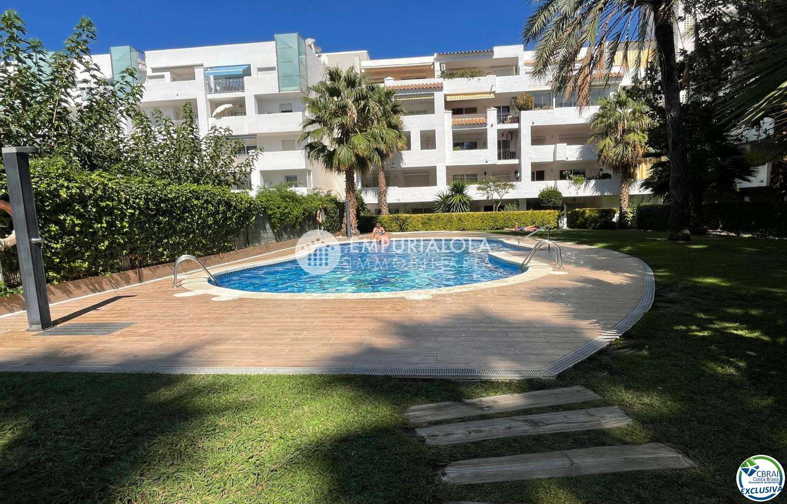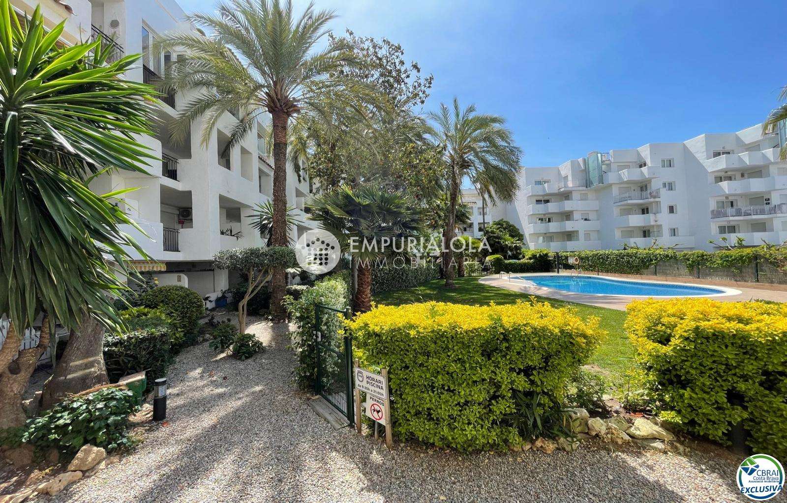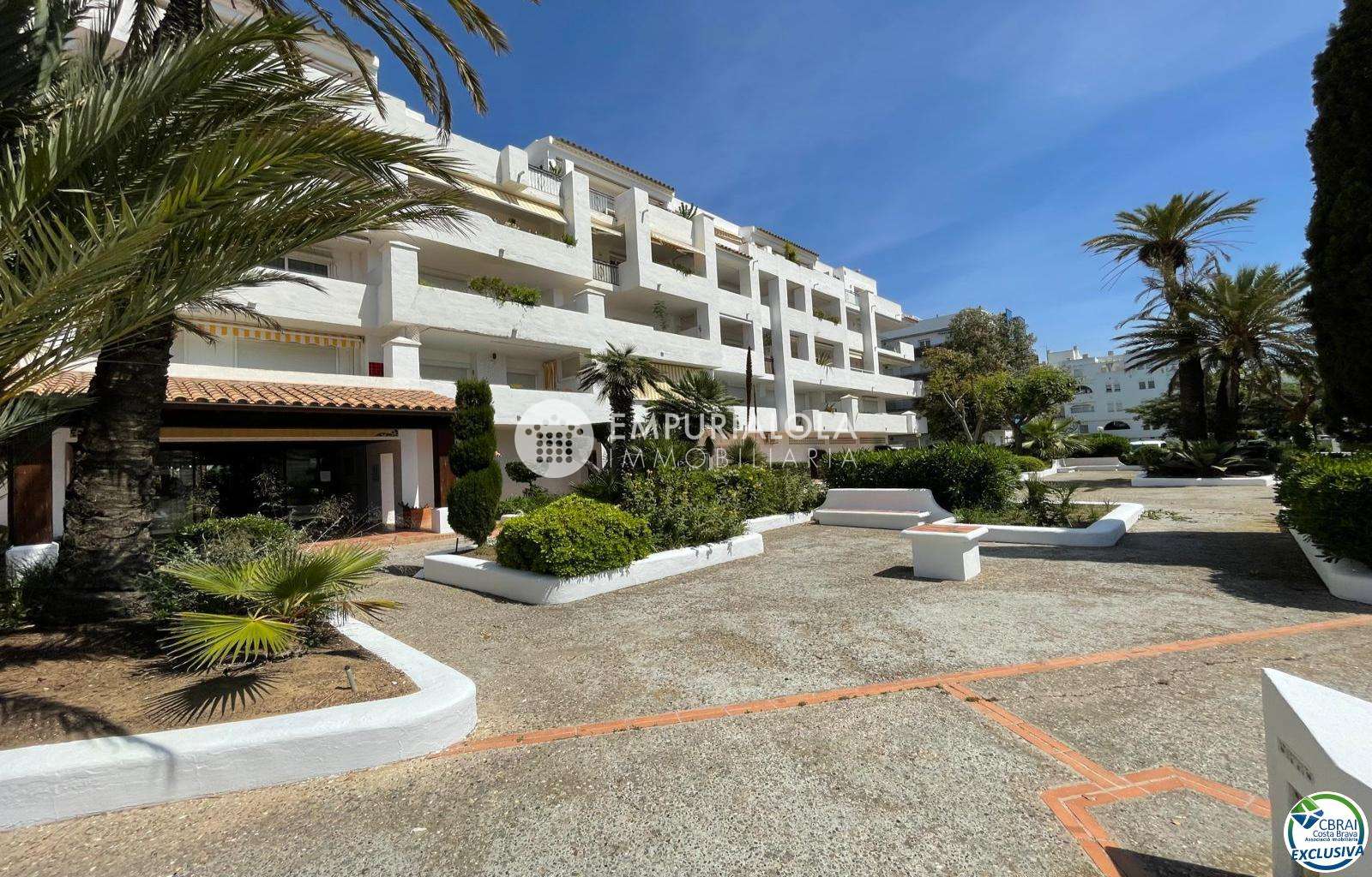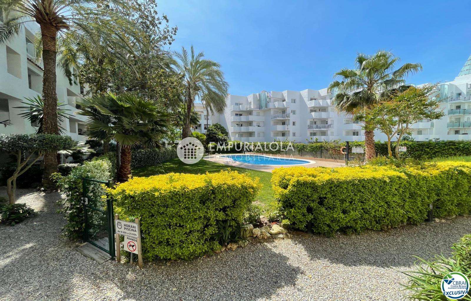 Beautiful, romantic, and cozy apartment in a luxury building with a concierge reception, a lovely garden, a natural grass pool, plenty of communal parking, and a mooring for rent in the same building. The apartment consists of an entrance hall, a spacious full bathroom, an open-plan kitchen equipped with cabinets, appliances, and a pantry-storage closet, a bright living-dining room with access to the furnished and sunny terrace, a double bedroom with a built-in wardrobe and access to the terrace, and an 8m2 terrace with beautiful unobstructed views, an awning, and all-day sun. Quiet area with wide streets and sidewalks, 1.5 km from the beach.