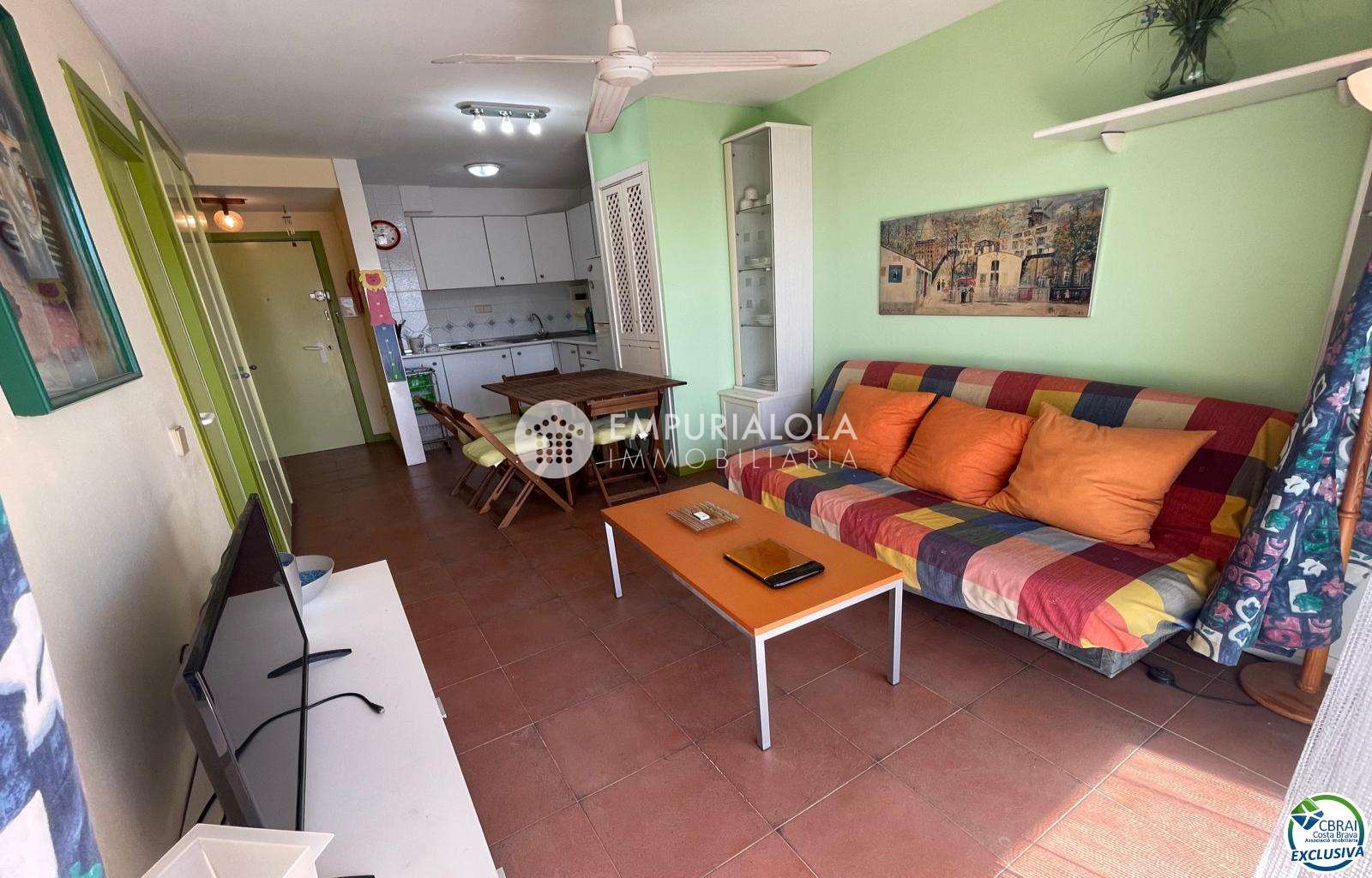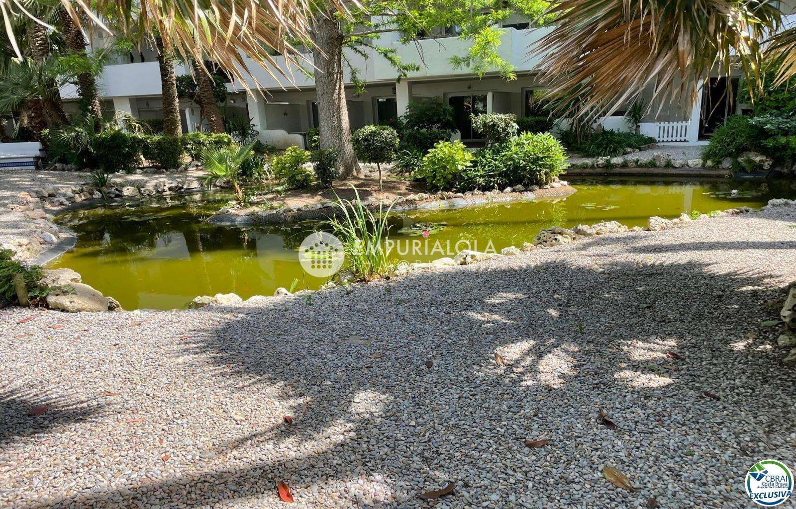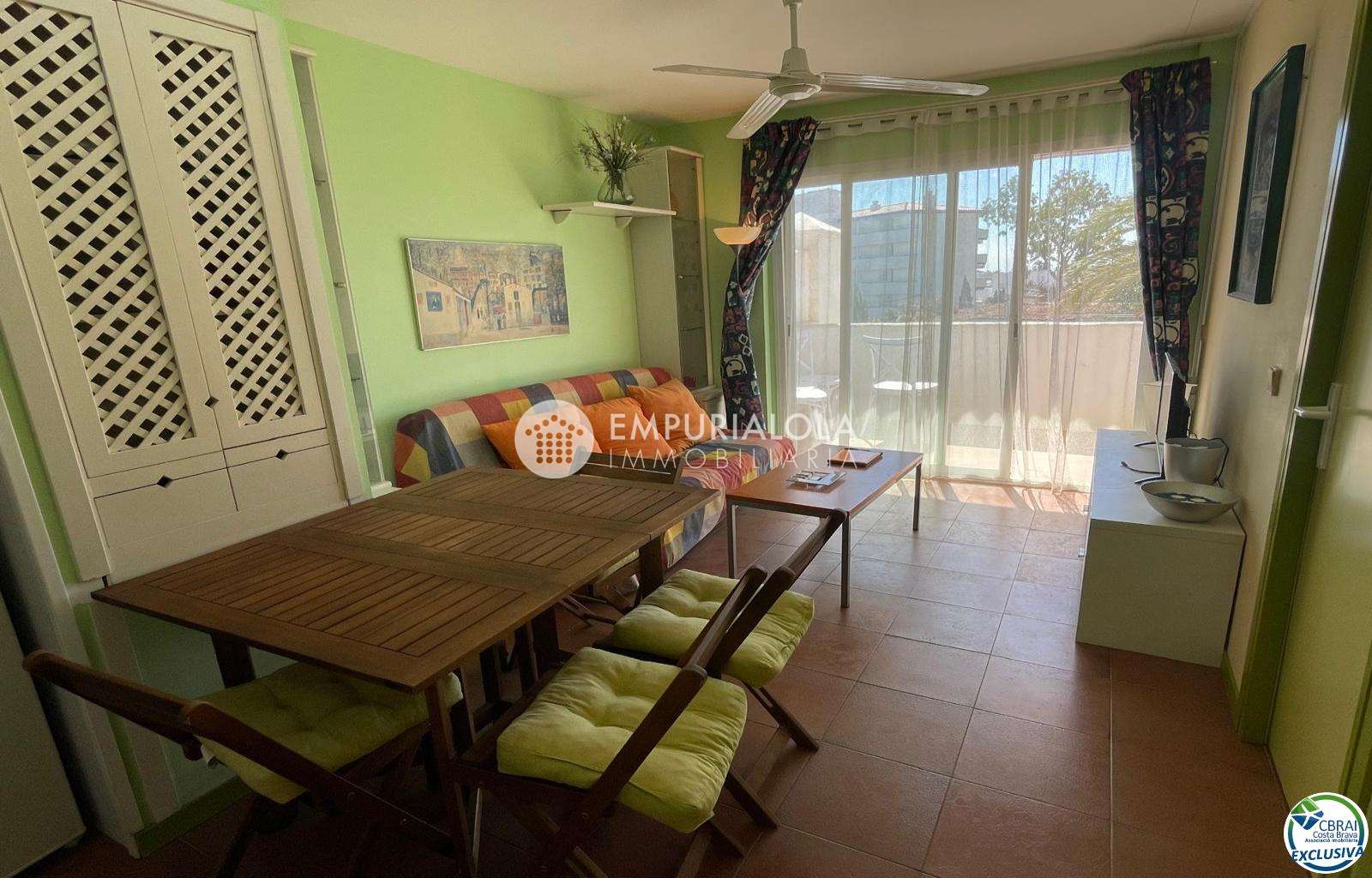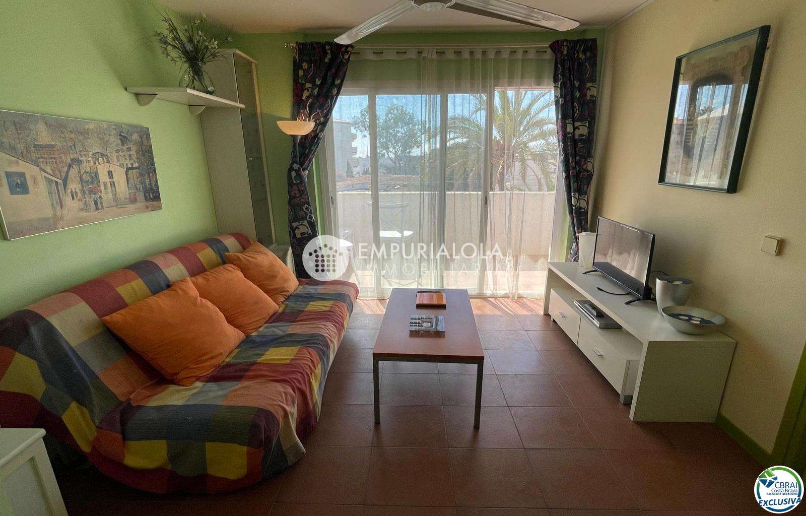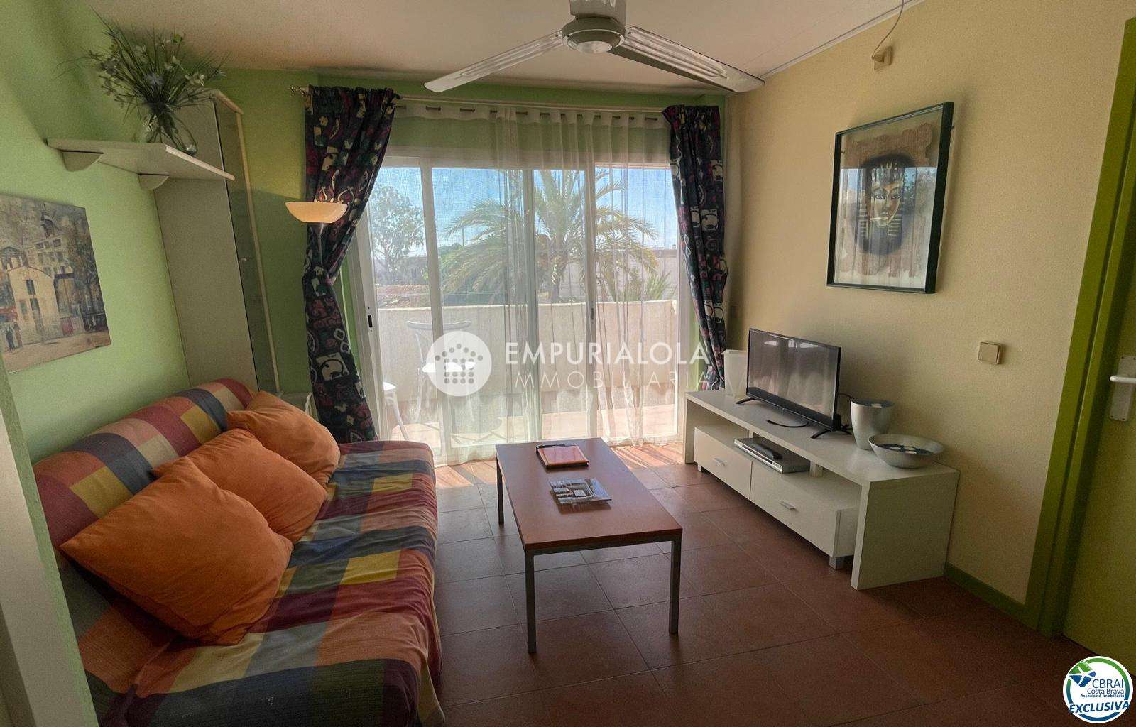 Beautiful, romantic, and cozy apartment in a luxury building with a concierge reception, a lovely garden, a natural grass pool, plenty of communal parking, and a mooring for rent in the same building. The apartment consists of an entrance hall, a spacious full bathroom, an open-plan kitchen equipped with cabinets, appliances, and a pantry-storage closet, a bright living-dining room with access to the furnished and sunny terrace, a double bedroom with a built-in wardrobe and access to the terrace, and an 8m2 terrace with beautiful unobstructed views, an awning, and all-day sun. Quiet area with wide streets and sidewalks, 1.5 km from the beach.