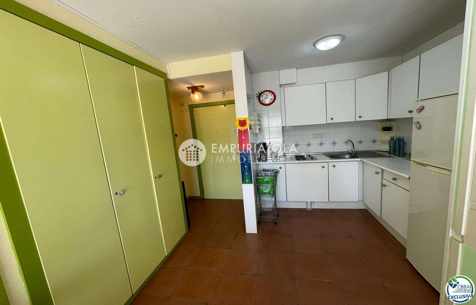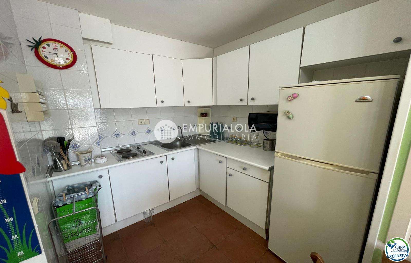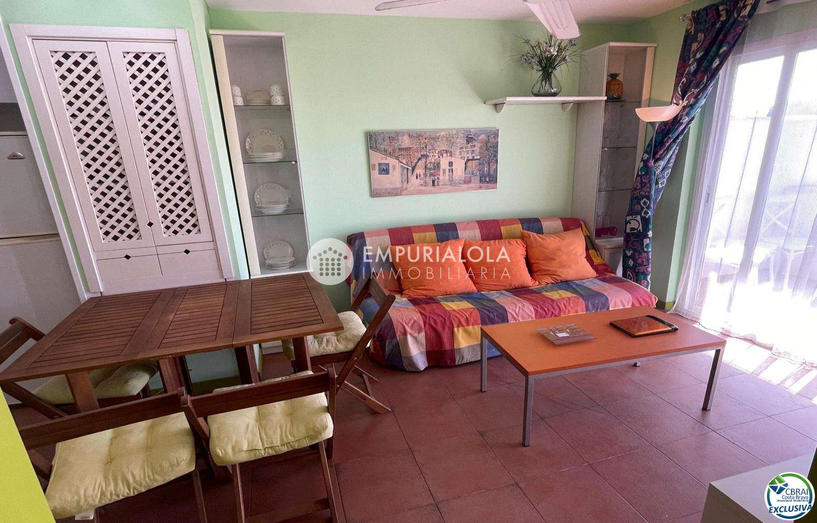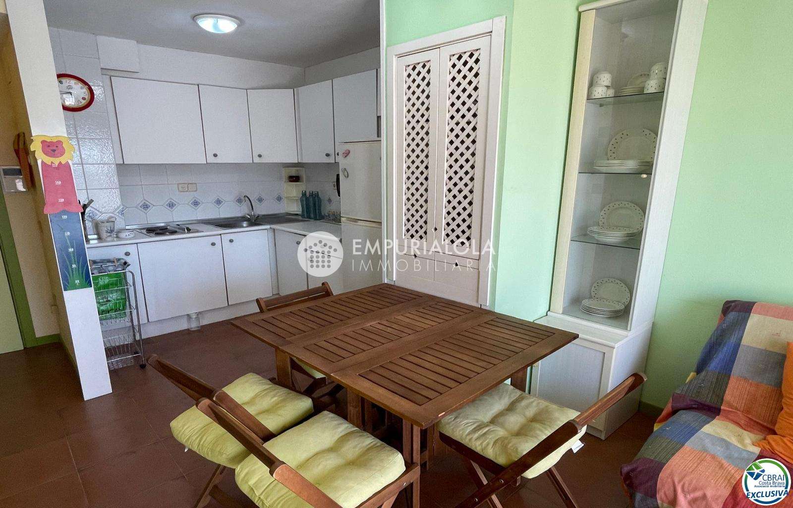 Beautiful, romantic, and cozy apartment in a luxury building with a concierge reception, a lovely garden, a natural grass pool, plenty of communal parking, and a mooring for rent in the same building. The apartment consists of an entrance hall, a spacious full bathroom, an open-plan kitchen equipped with cabinets, appliances, and a pantry-storage closet, a bright living-dining room with access to the furnished and sunny terrace, a double bedroom with a built-in wardrobe and access to the terrace, and an 8m2 terrace with beautiful unobstructed views, an awning, and all-day sun. Quiet area with wide streets and sidewalks, 1.5 km from the beach.