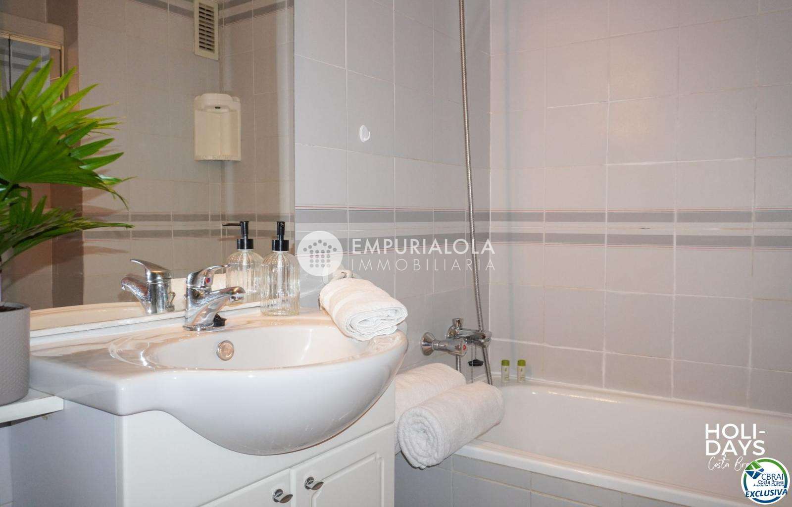 Inside, the studio offers a practical and welcoming layout that makes the most of every square metre. It features an open-plan living/sleeping area, a functional kitchen and a full bathroom, creating a comfortable space for summer holidays and year-round getaways alike. Thanks to the natural light and pleasant orientation, the apartment feels airy and inviting.
