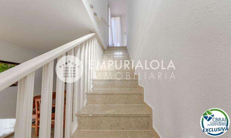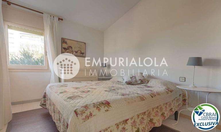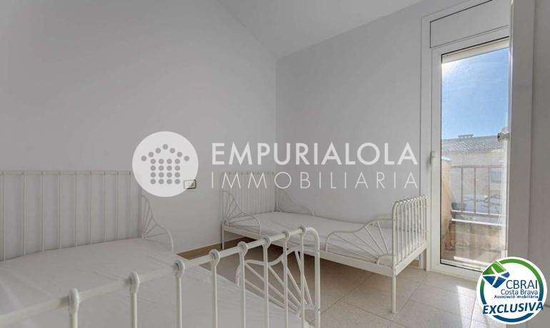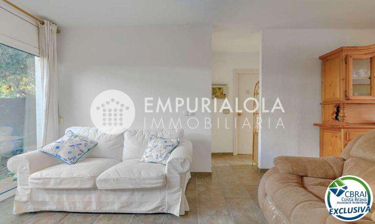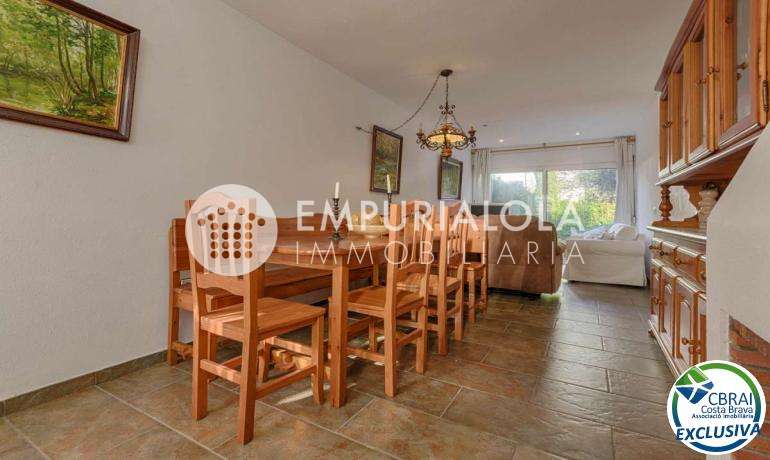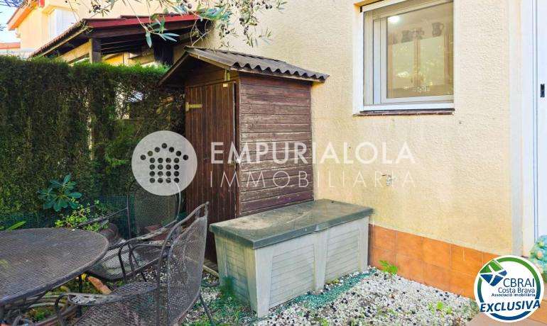 ROSES, SANTA MARGARITA: Located within a secure and quiet residential complex, this charming semi-detached house offers comfortable living with a communal swimming pool, private garden, and two parking spaces. It also benefits from a prime location, close to amenities such as shops, services, and transport links. The property, built on two levels, comprises on the ground floor a living/dining room, a fitted and fully equipped kitchen, a bedroom, and a bathroom, allowing for single-level living if desired. Upstairs, you will find two bedrooms, a full bathroom, and a terrace, ideal for enjoying relaxing moments outdoors. Outside, the private garden provides a true extension of the living space, perfect for dining on sunny days. The well-maintained complex features a communal swimming pool and offers a secure and pleasant environment. This property is ideal as a primary or secondary residence, or as an investment, combining tranquility, comfort, and proximity to amenities.