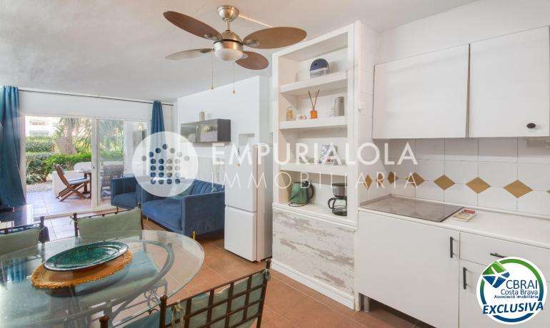 We present this charming ground-floor apartment located in one of the most sought-after areas of Roses – Santa Margarita, just 1.5 km from the beach. Situated in a residential complex known for its tranquility and excellent amenities, this apartment is ideal for family enjoyment or a relaxing getaway.