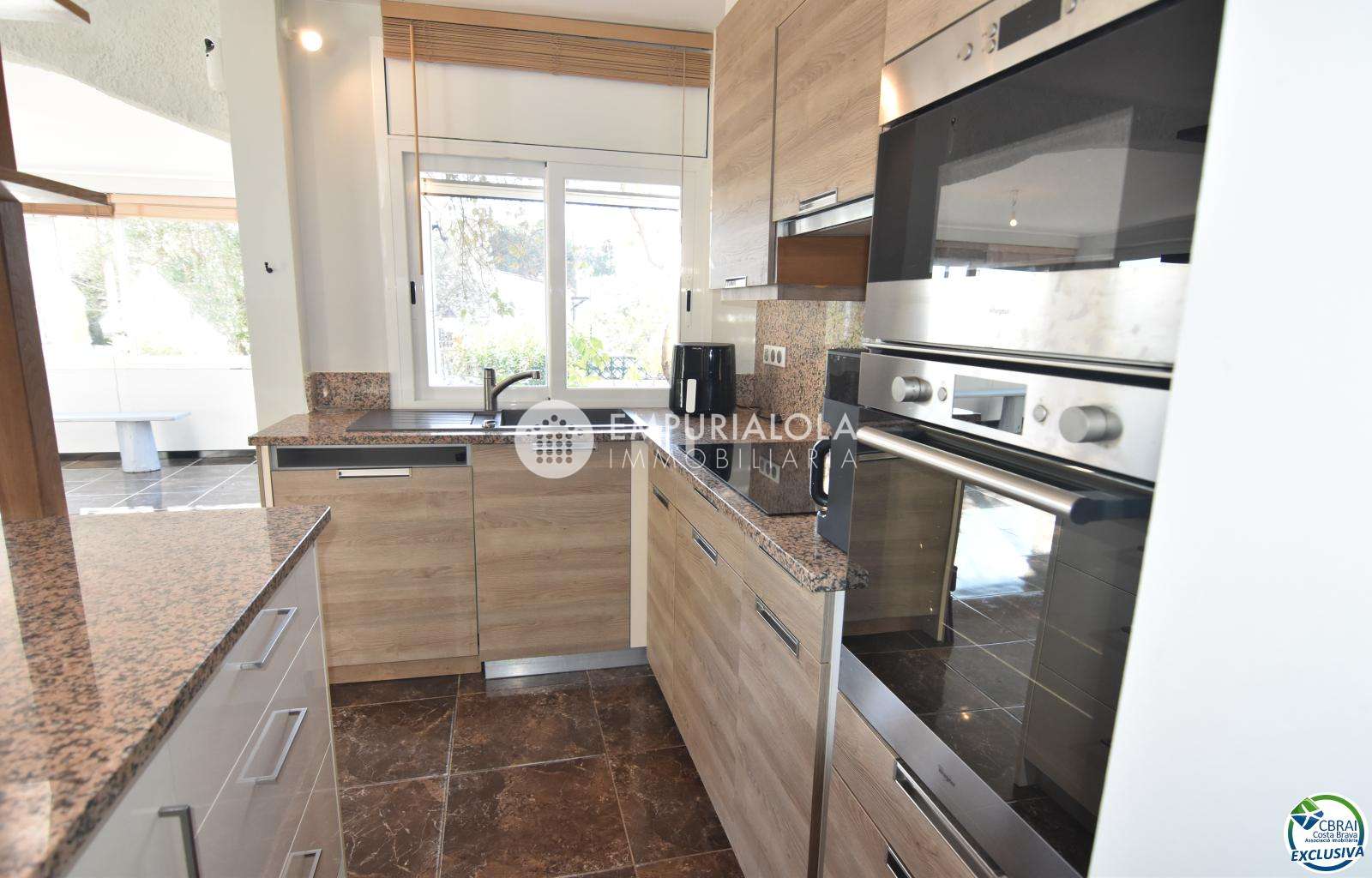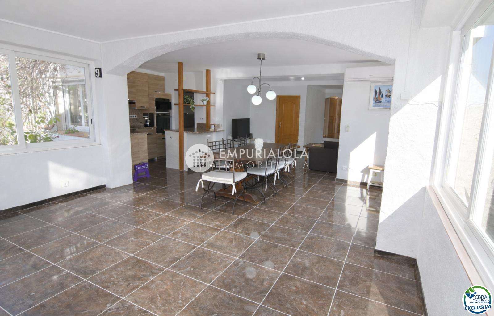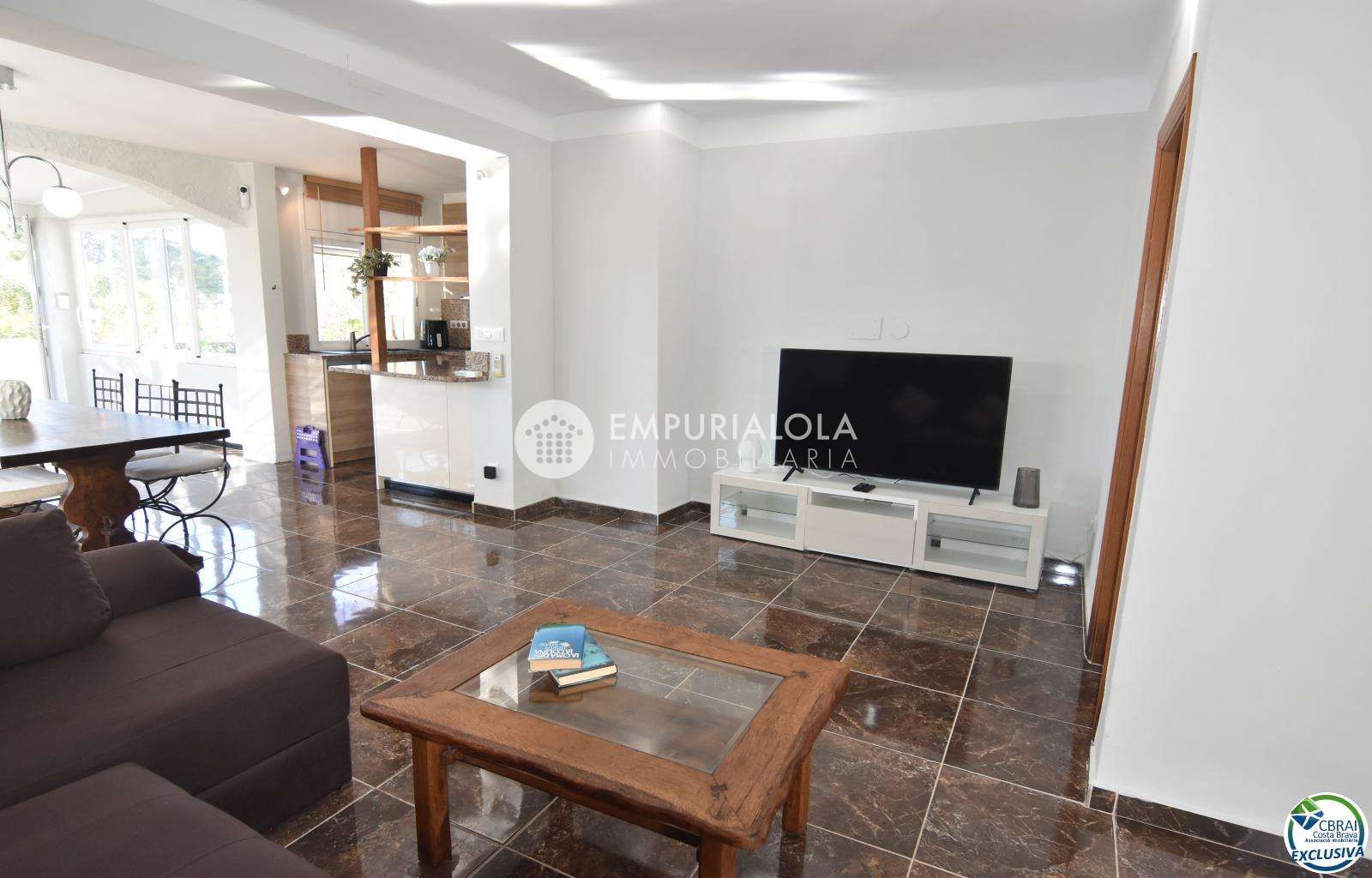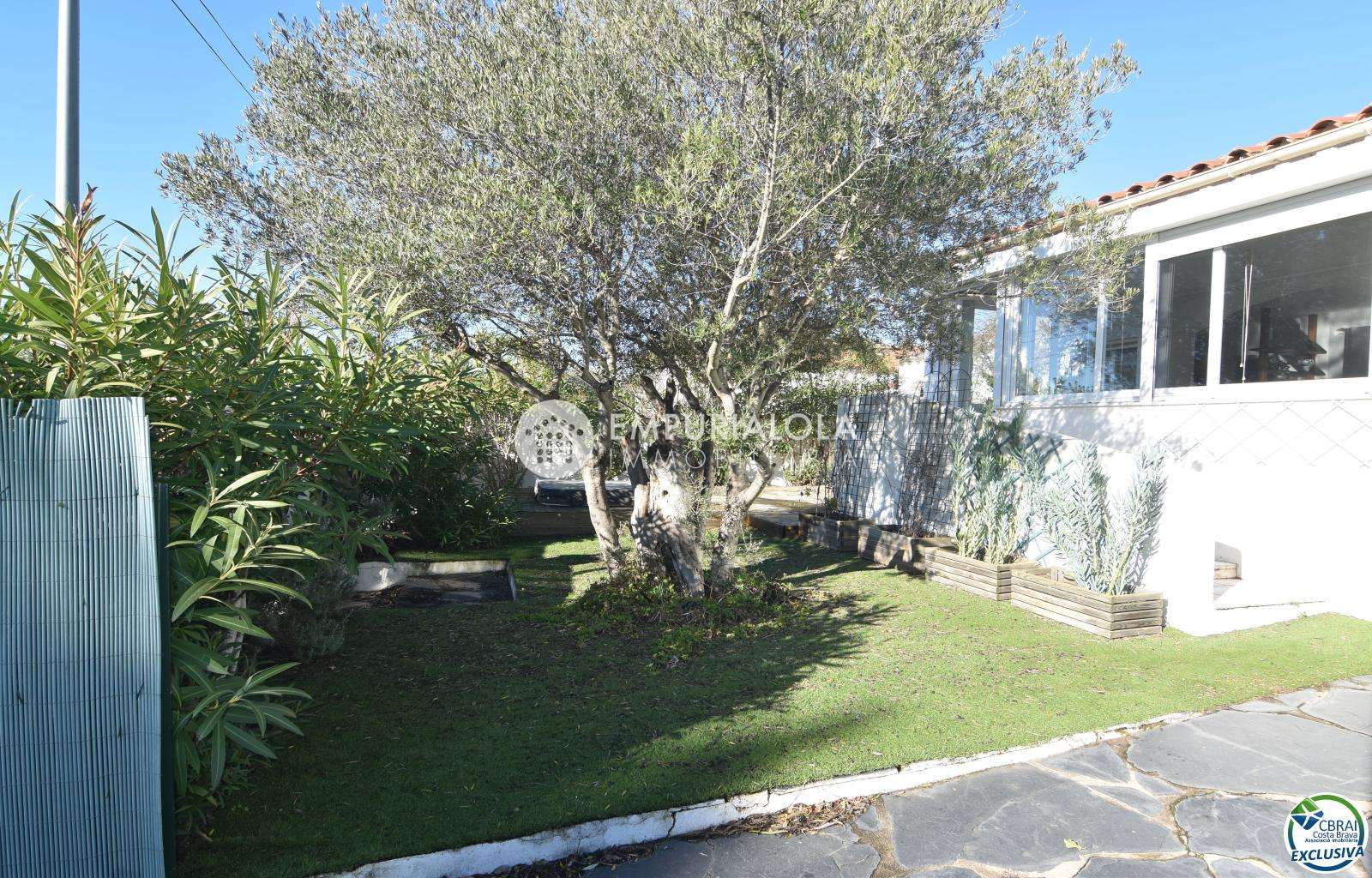 Bright detached house with garden, located in the quiet residential area of Mas Busca, in Roses. The property features a spacious glazed living-dining room offering plenty of natural light and outdoor views, an open-plan kitchen with modern finishes, 3 bedrooms (one with a walk-in wardrobe), and a renovated bathroom with shower.