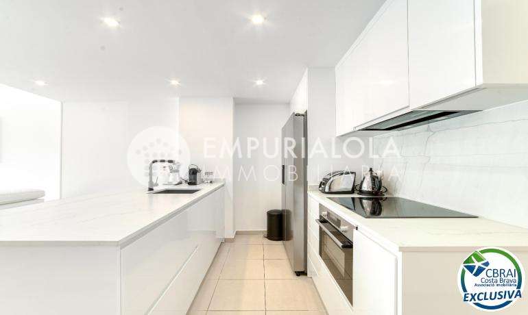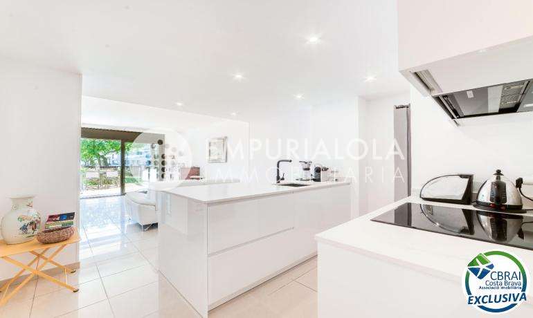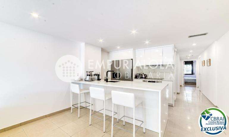 Discover this exclusive ground floor apartment, located in a 2007 building on the seafront, in the Salatar area (Roses). Fully renovated in a modern and elegant style, it offers a warm and contemporary atmosphere, ideal for enjoying the Mediterranean all year round.