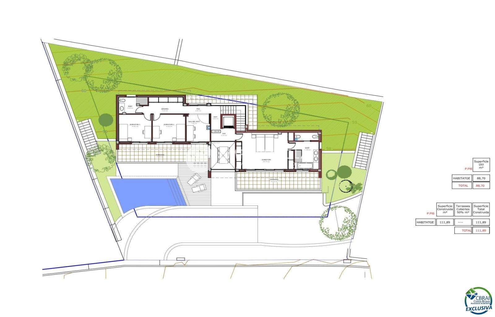 The constructed area of the plot in Roses is 115 m2 of housing, 18.50 m2 of porch and 42 m2 of garage, with a total constructed area of 175.50 M2.