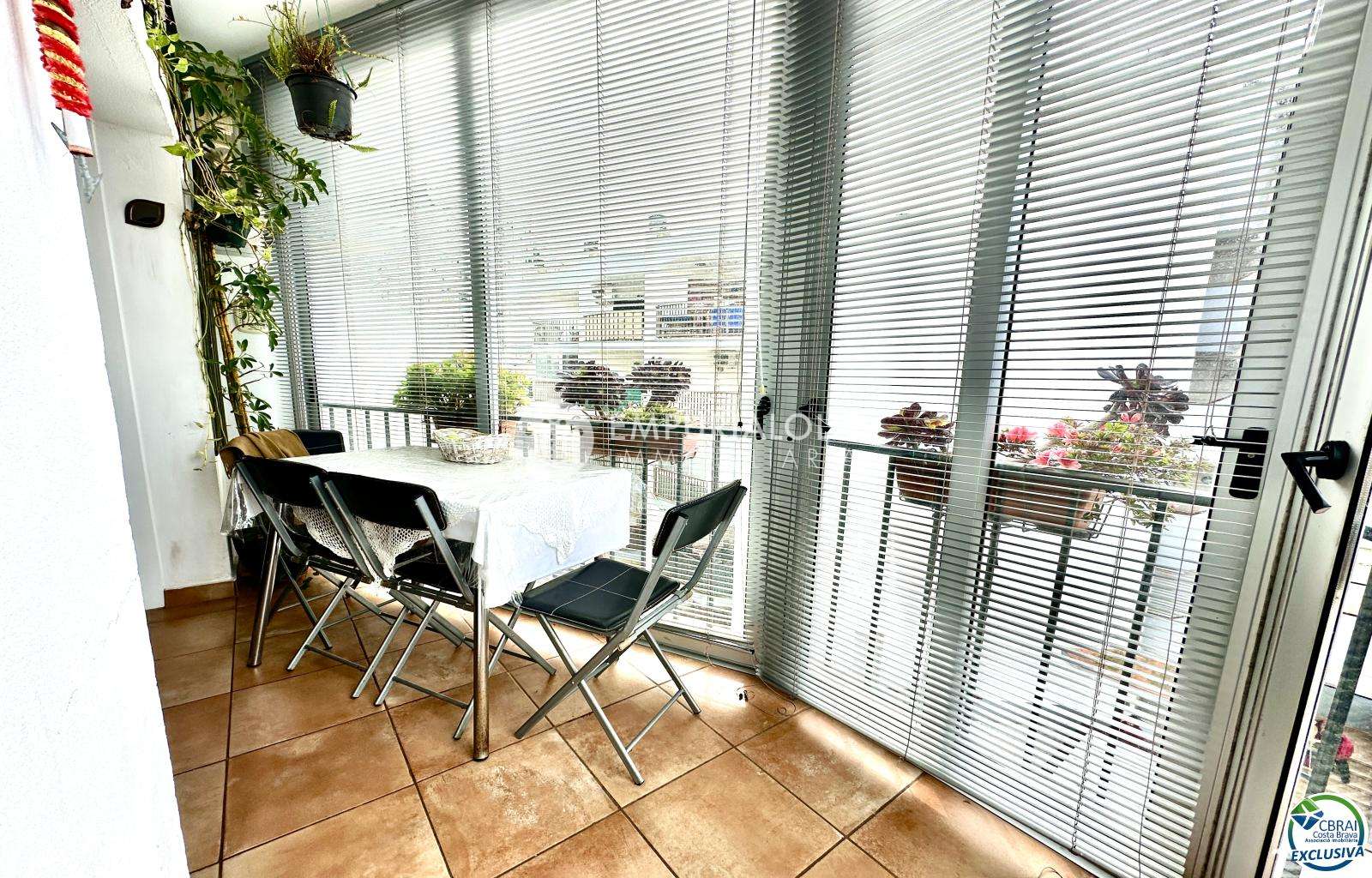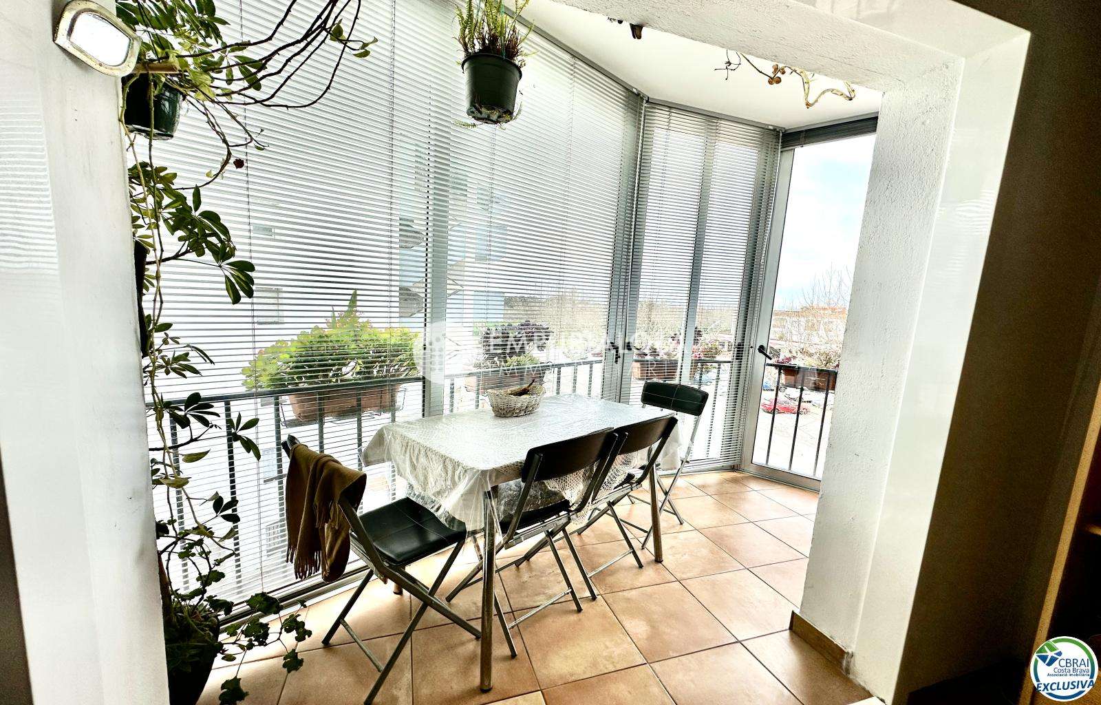 A fully enclosed terrace with sliding glass doors, offering an extra living space perfect for dining or relaxing after a day at the beach.