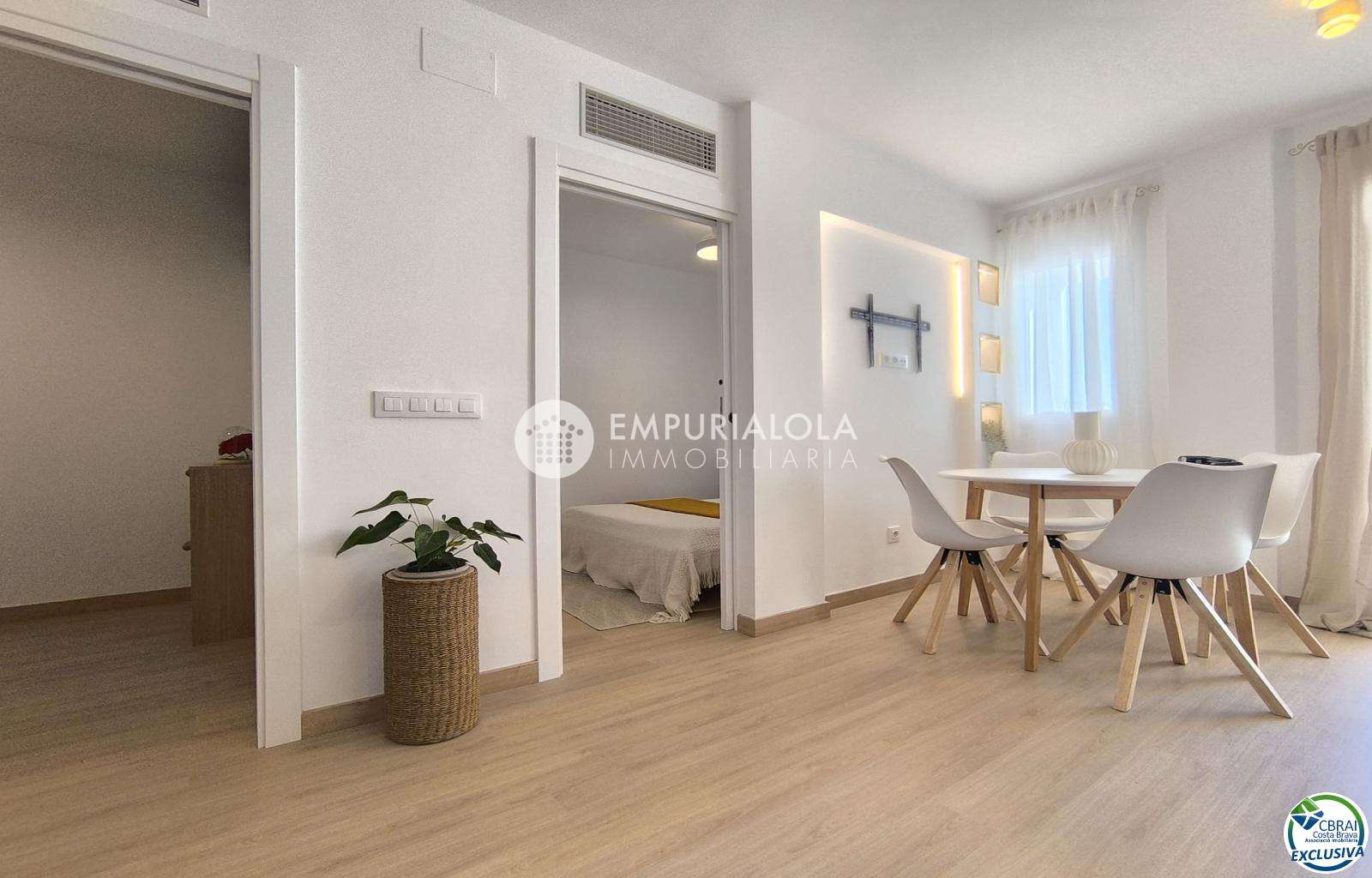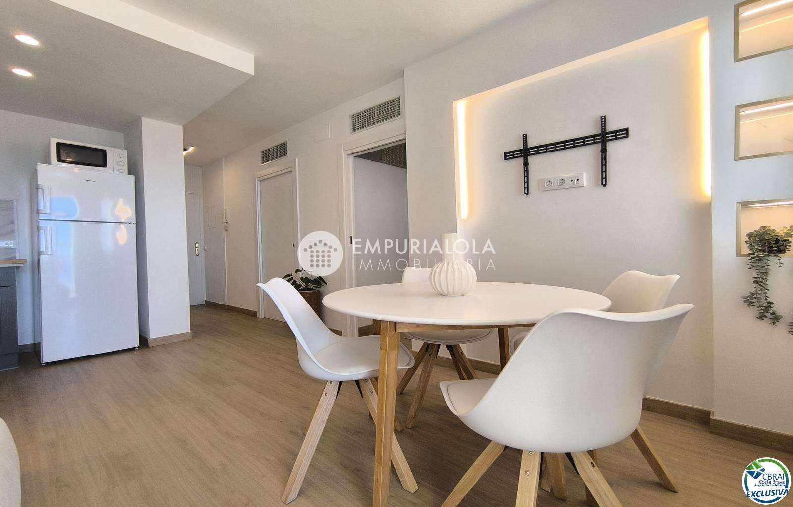 Apartamento reformado en primera línea de playa con vistas al mar. Dispone de una luminosa sala de estar con acceso a una terraza privada ideal para relajarse, una cocina moderna de concepto abierto, dos dormitorios y un baño reformado.