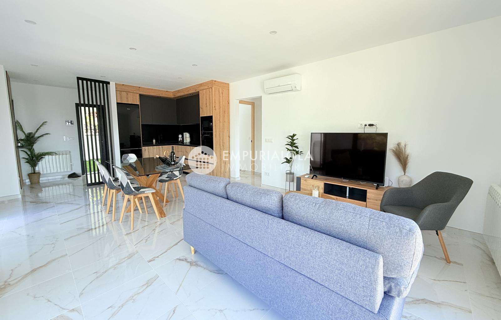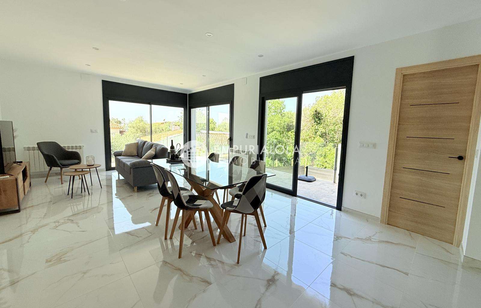 Ubicada en la exclusiva urbanización de Mas Fumats, en Roses, esta espectacular casa de 3 habitaciones ofrece el equilibrio perfecto entre lujo, comodidad y vistas de ensueño. Totalmente reformada con los más altos estándares de calidad, cada rincón de la propiedad está diseñado para impresionar. Desde la entrada, se siente la atención al detalle, con acabados modernos que resaltan en cada estancia, creando un ambiente cálido y acogedor. Una de las habitaciones, amplia y luminosa, es en suite, brindando un espacio privado y exclusivo. Los dos baños de la casa, ambos equipados con duchas italianas, destacan por su diseño contemporáneo, ofreciendo una experiencia de confort y lujo a diario.