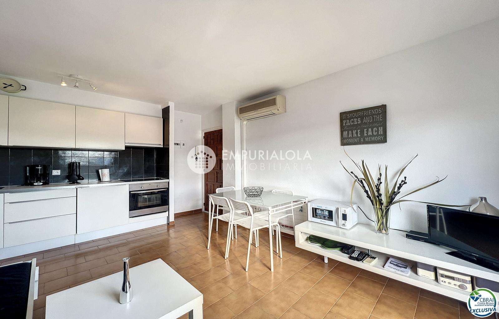 Situé dans le secteur recherché du Poblat Típic à Empuriabrava, cet appartement avec LICENCE TOURISTIQUE de 34 m² est une belle opportunité aussi bien pour un investissement locatif que pour profiter de la Costa Brava toute l’année.
